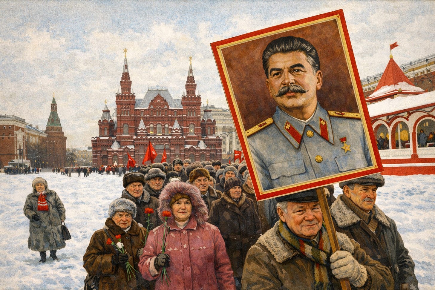Russians were famished for that same ironclad resolve. They wanted their country to be pushed into the future, for a bright and vibrant future to be in the present, no longer a fairy tale promised by faltering and sickly authorities. Stalin’s enduring appeal, carried in banners through Red Square and etched in public memory, laid bare a society’s profound yearning: not for tyranny’s return, but for the certainty of greatness restored.